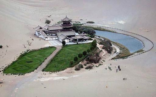 ⊙補救方法:大陸當局從 2002年投入超過億元台幣,實施「綜合人工回灌滲水」治理工程,引用黨河河水回灌月牙泉,增加水分。