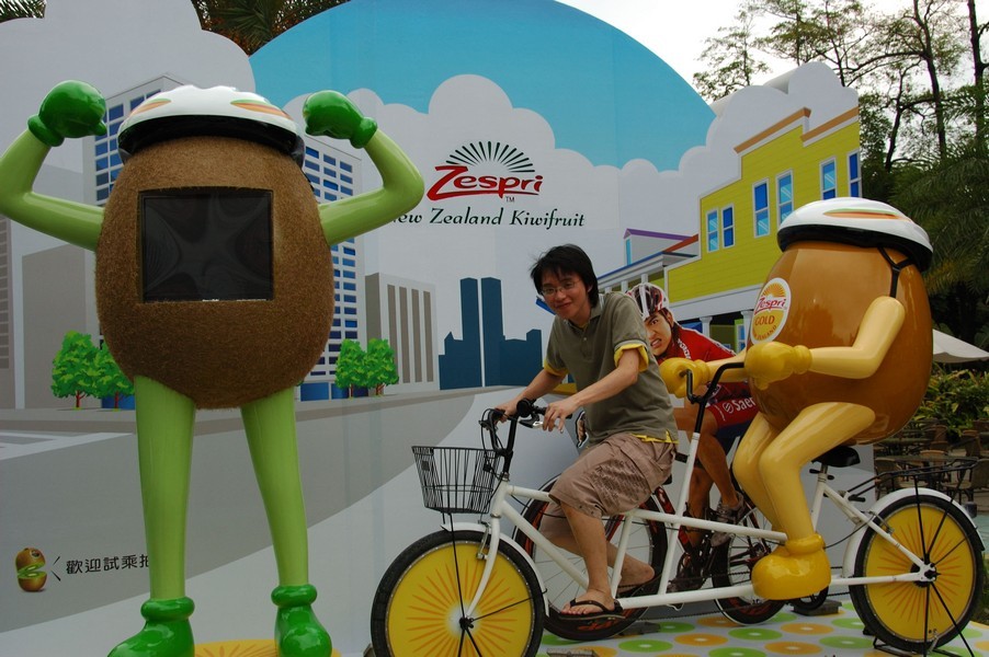 大家走到城市光廊,發現有讓大家照相的腳踏車