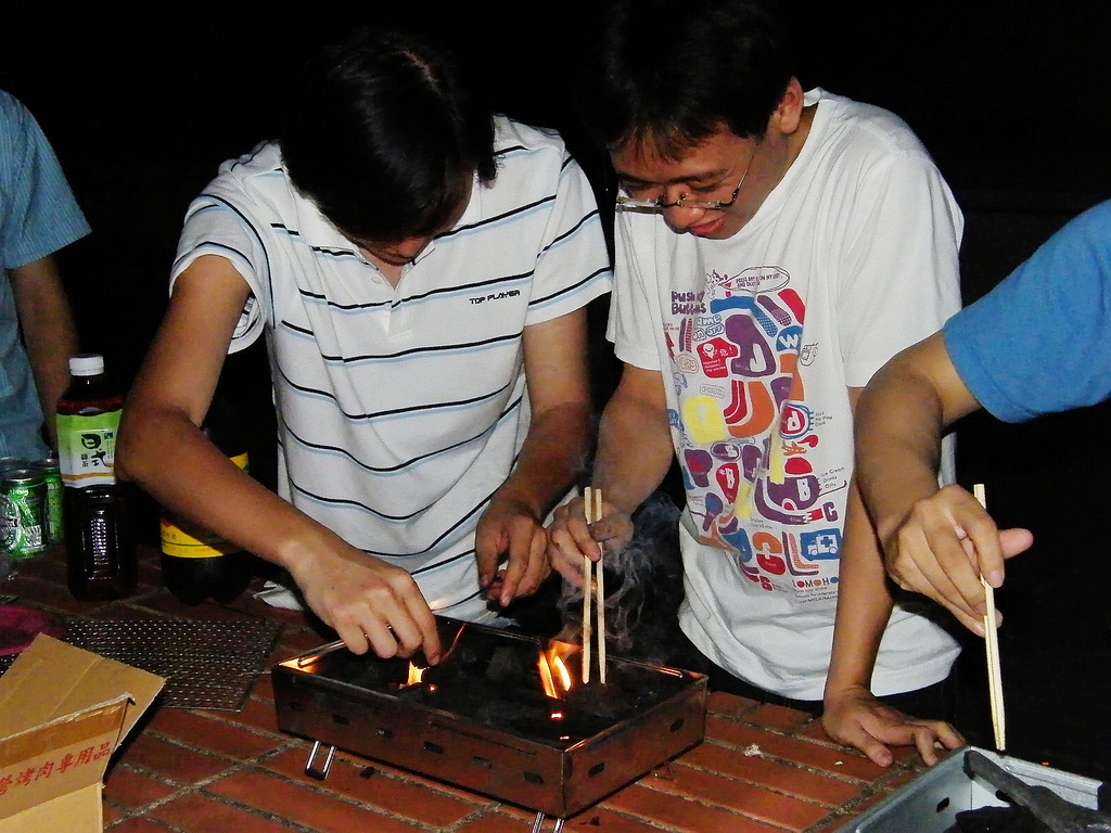 本來大家決定到後山烤,結果後來發現學生活動中心樓上可以烤