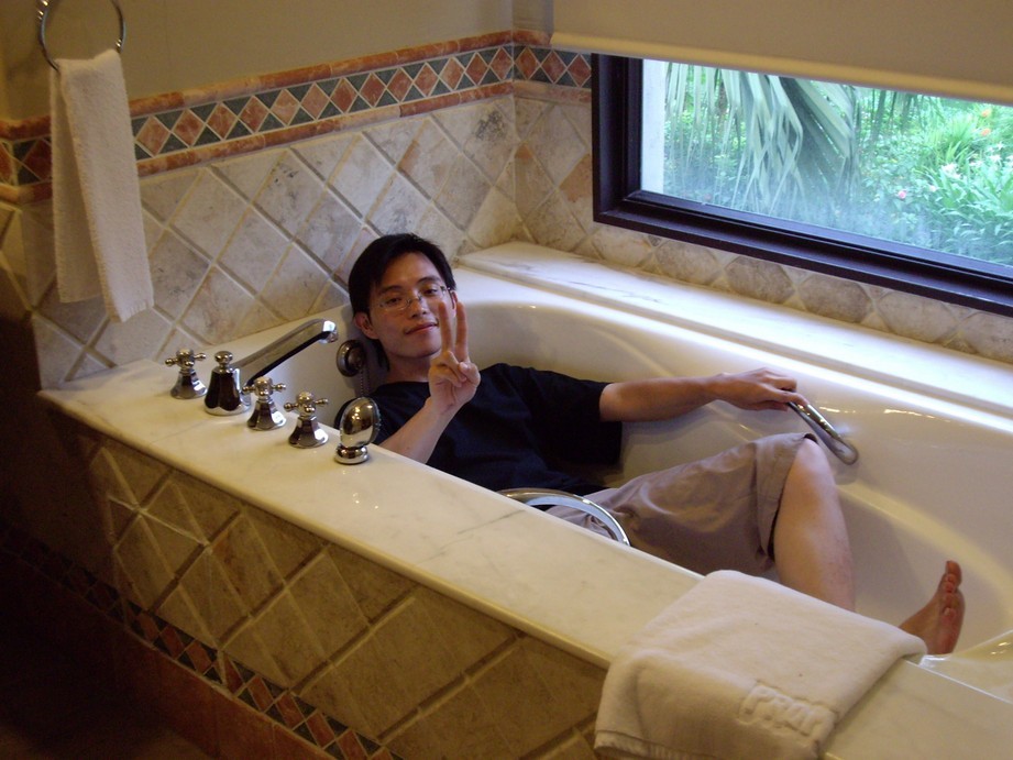 我們就挑免錢的,像坐船環繞理想大地、還有游泳