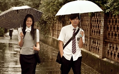 被老師訓話的湘倫跟丟了小雨,沒想到及時的一場雨讓兩人在校外避雨時